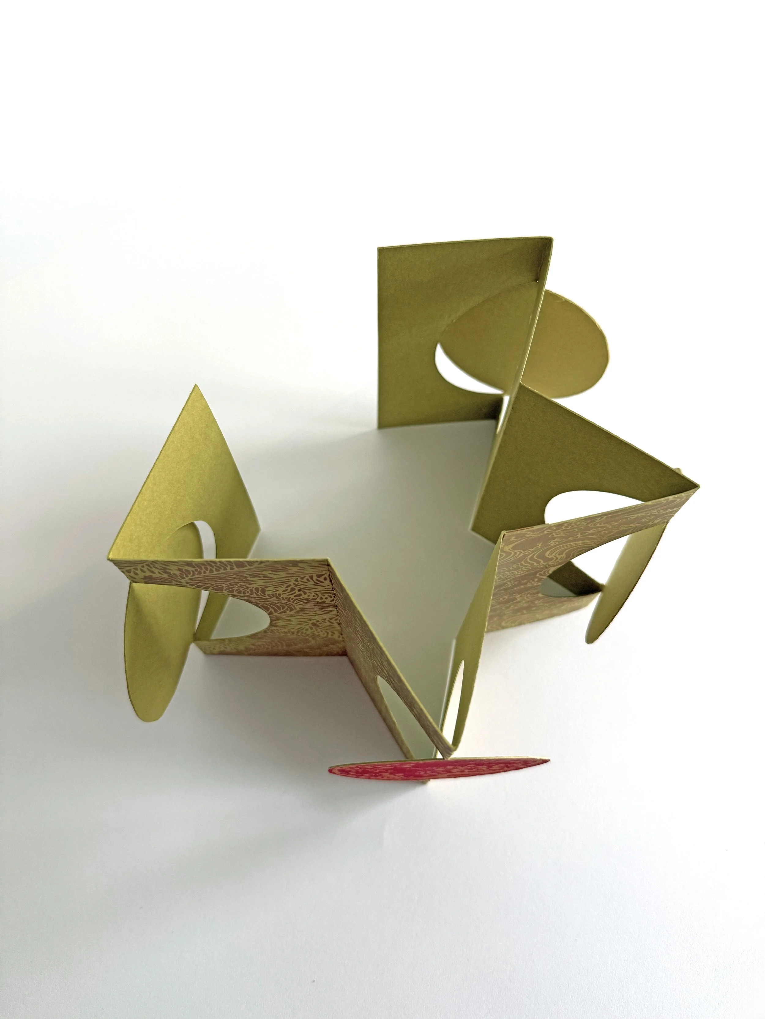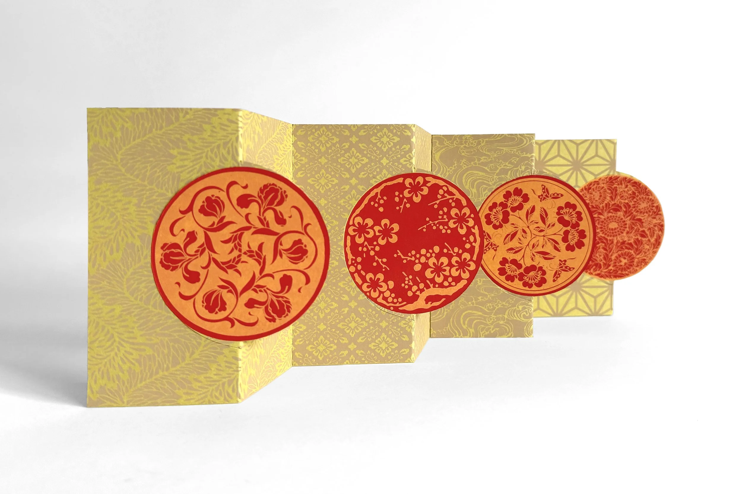 3 layer screen print on cover stock, folded into an accordion book with a panel cut-out